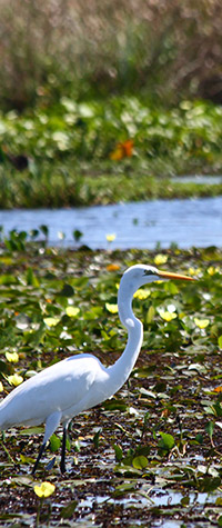 Departure from the dock of the Inn, through Laguna Iberá towards 2 waterways: one located at the southwest and the other one at the southeast. The idea is going all over the place silently in the sectors where it is possible to do it; and where the depth does not allow this kind of navigation, the vessel has an outboard motor which may be regulated in order to be able to listen to the sounds of the environment. All along these waterways, it is possible to watch, and really closely, the two species of caimans of South America: the "caiman yacare" and the "broad-snouted caiman"; the biggest rodent in the world known as "capybara"; the largest native deer of Argentina known as the "marsh deer"; the otter known as "lobito de río"; more than 200 species of birds (among them: wattled jacanas; cocoi herons; white-necked herons; common gallinules; purple gallinules; southern screamers; shiny cowbirds; unicolour blackbirds; screaming cowbirds; spinetails; thornbirds; ringed, amazon and green kingfishers; southern crested caracaras; snails; great black hawks; rufous-sided crakes, anhingas, cormorants, striated herons, etc.) and its flora, mainly represented by the family of Common Water Hyacinths with an important variety of species.